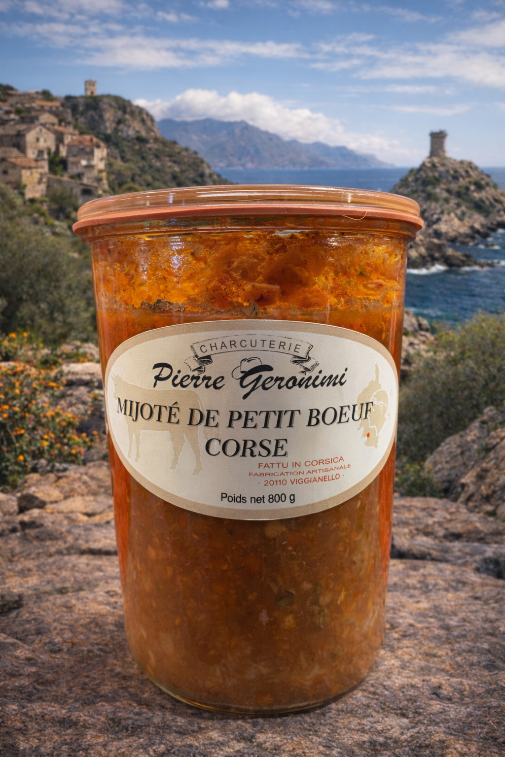 Mijoté de petits bœuf corse fabriqué de façon artisanale en Corse d’après une recette de la famille Geronimi